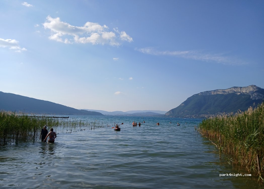 Accueil "aimable". Emplacements étroits mais accès au lac facile (1 pour la mise à l'eau et plage plus grande après quelques mètres sur un sentier sur la droite). 2 aires de jeu pour les enfants. Annecy à environ 9km par la piste cyclable. 30€80 pour un Camping car (2 adultes / 2 enfants). Ce n'est pas donné mais le camping sauvage avec accès lac est difficile dans ce secteur.