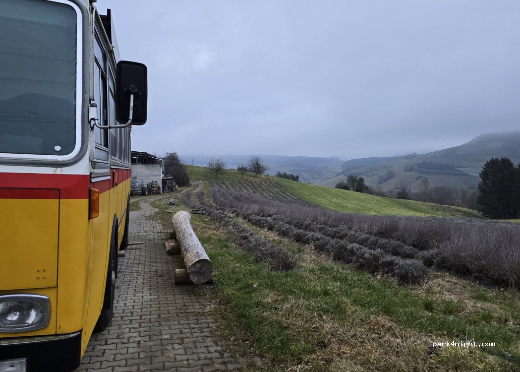 Wir standen vom 16. auf den 17.7. hier. Herrliche Aussicht mit dem Lavendelfeld direkt vor der Türe. Am Abend konnten wir Rehe und einen Fuchs beobachten. Das gebuchte Frühstück war der Hammer (Gipfeli, Züpfe, Fleisch/Käseplatte, Gemüse, versch.Müesli, Joghurts, Eier, Konfi, Honig,Trockenfrüchte, Kaffee, Milch, Most). Sehr schönes Bad mit Dusche und WC. Herzlichen Dank für die Gastfreundschaft.