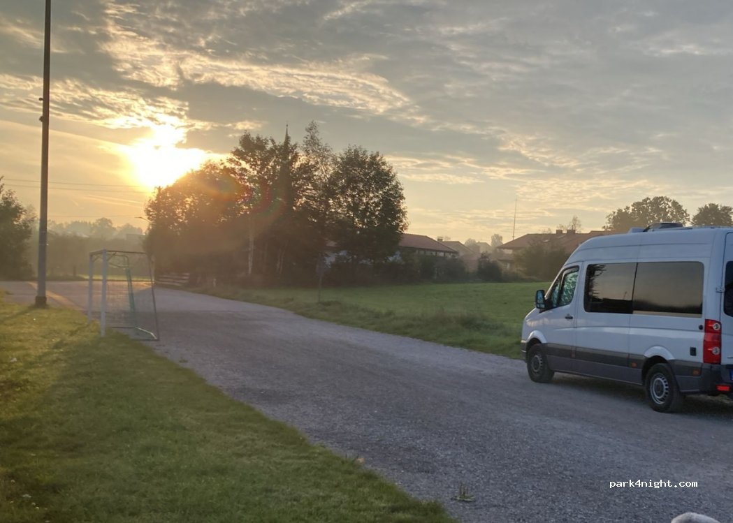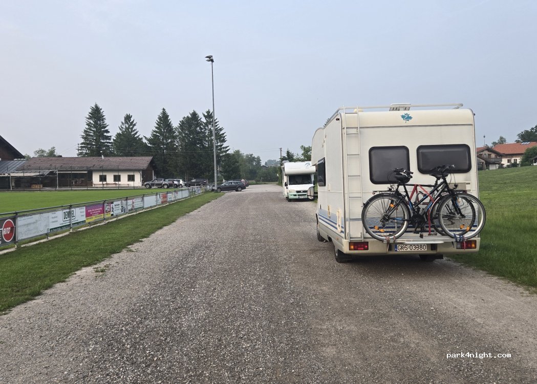 Parking available at the sports field on the edge of a residential area. Only for self-sufficient campers. We were here on the night of a public holiday, so it was very quiet. Lovely walking paths. The Reutberg monastery brewery with its rustic Klosterbräustüberl inn is a 10-minute walk away. Very good food and beer!