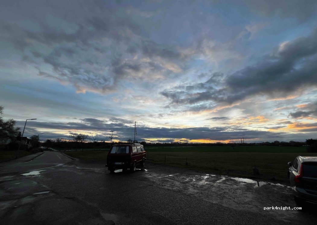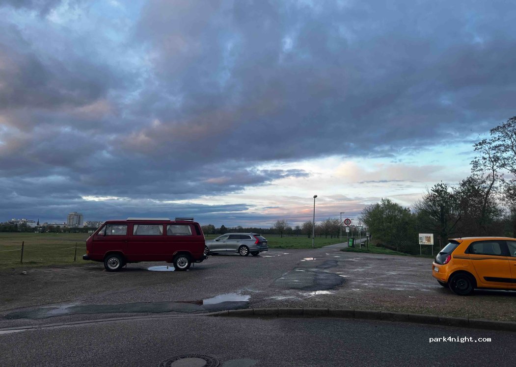 Small parking lot on the outskirts of Karlsruhe. The so-called Drachenwiese is a popular destination for anyone who wants to fly a kite. Residents often visit the place to walk their dogs, but overall it is quiet for the location. From the parking lot you have a great view of the sunset. Space is quite flat and offers space for 6-10 vehicles/cars. No problem finding a spot with small campers. Please leave the place clean and tidy! Thanks.