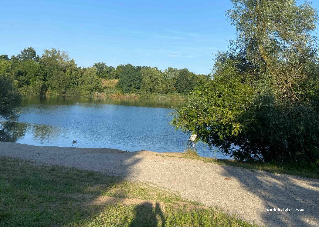 Ich war an einem Samstagabend hier, dementsprechend ziemliches Kommen und Gehen (Autos, Jugendliche, die sich am See treffen) bis ca. Mitternacht. Ansonsten beliebt bei Hundebesitzer, die auch gerne mit dem Auto angefahren kommen. Im See kann nicht gebadet werden. (Große) Mülleimer sind vor Ort. Schöner Stellplatz für eine Nacht :)