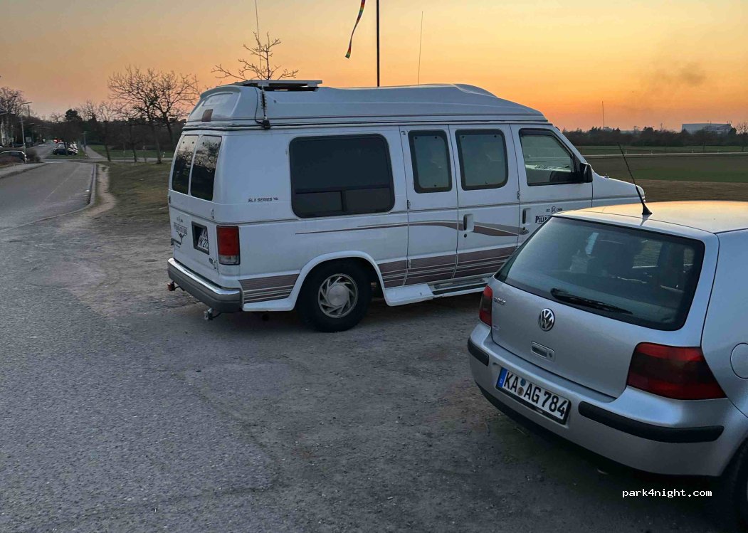 Kleiner Parkplatz am Stadtrand von Karlsruhe. Die sogenannte Drachenwiese ist beliebter Zielort für alle, die einen Drachen steigen lassen wollen. Ort wird zwar gerne von Anwohnern für Gassirunden mit dem Hund aufgesucht, insgesamt ist es aber für die Lage ruhig. Vom Parkplatz hat man eine tolle Sicht zum Sonnenuntergang. Platz ist recht eben und bietet Platz für 6-10 Fahrzeuge/PKW. Mit kleinen Campern kein Problem einen Platz zu finden. Bitte verlasst den Platz sauber und ordentlich! Danke.