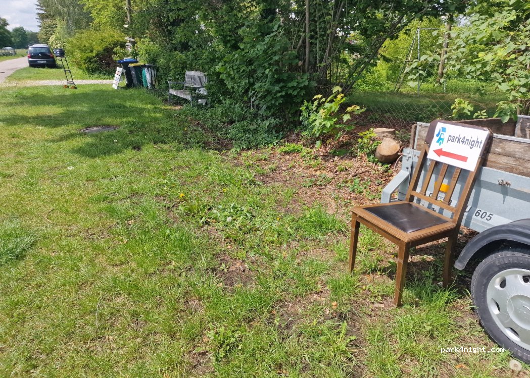 2 parking spaces directly opposite a horse pasture on my property. Quiet. Good transport links to Munich, S-Bahn is 3 km away. You can take fresh eggs from the nests yourself free of charge. Fruit and vegetables from my garden are also free for you. An idyllic swimming lake is 5 minutes away on foot. Dogs allowed!! IMPORTANT: The space is now marked with park4night signs. Registration is NOT required. Just come. If I don't respond when I ring the bell, i.e. am not at home, please put 20€ per night in the mailbox or plug in the electricity with PayPal, that's it. If the 2 spaces are occupied, please move on. Thank you.