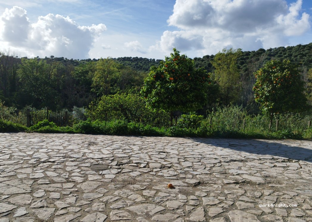 Espacio agradable para pernoctar, suelo empedrado y plano en una calle donde hay casitas rurales y huertas, a las afueras del Bosque. A 2 min andando del comienzo para la ruta senda del Río Majaceite. Solo que el gallo Felipe será tu despertador al amanecer.