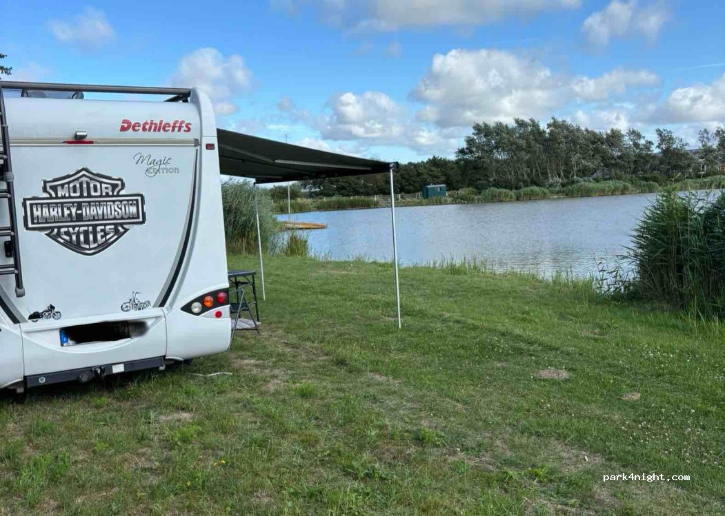 Place de parking intégrée dans un magnifique paysage lacustre dans une ferme équestre avec accès à un lac de baignade et de pêche.
