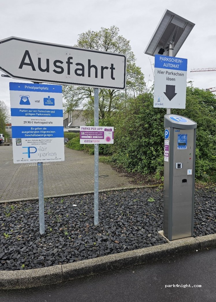 Sehr ruhige Lage. Waren zwar nur für 2 Stunden dort aber Parkticket kann man problemlos ziehen. Eine sehr große Anlage zum Parken. Über die Straße rüber, ist man gleich am Huma oder man geht hinten rum und steht vor einem Cafe.