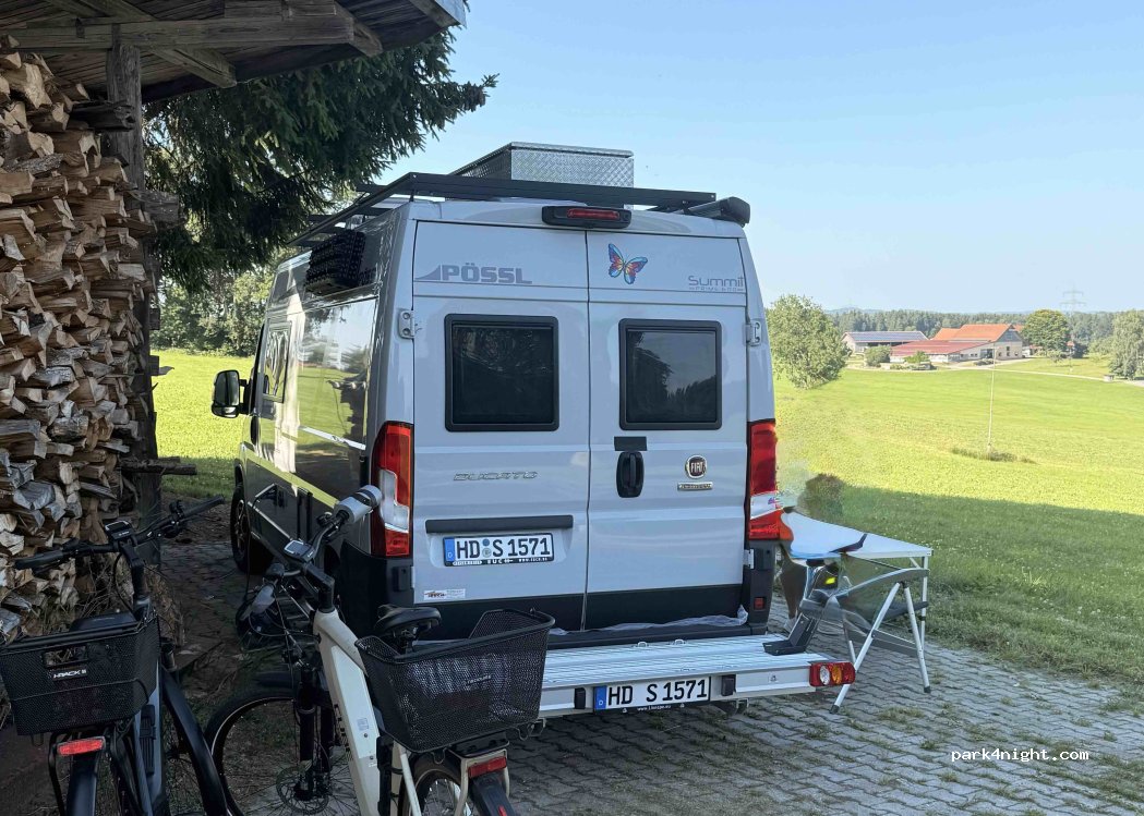 Superschön gelegener Stellplatz mit traumhafter Aussicht, absoluter Ruhe und sehr herzlichen Gastgebern. Der Platz ist eben, Strom ist vorhanden, Feuerschale und Holz auch. Einfach perfekt für uns. Herrliche Umgebung, ideal für Ausflüge mit dem Rad.