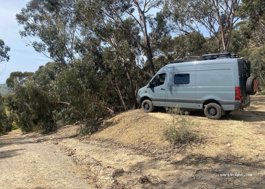 Challenging driveway to a perfect terrace. There is room for two vehicles. Some shade from the trees. Valley of the Temples can be reached on foot or by bike.
