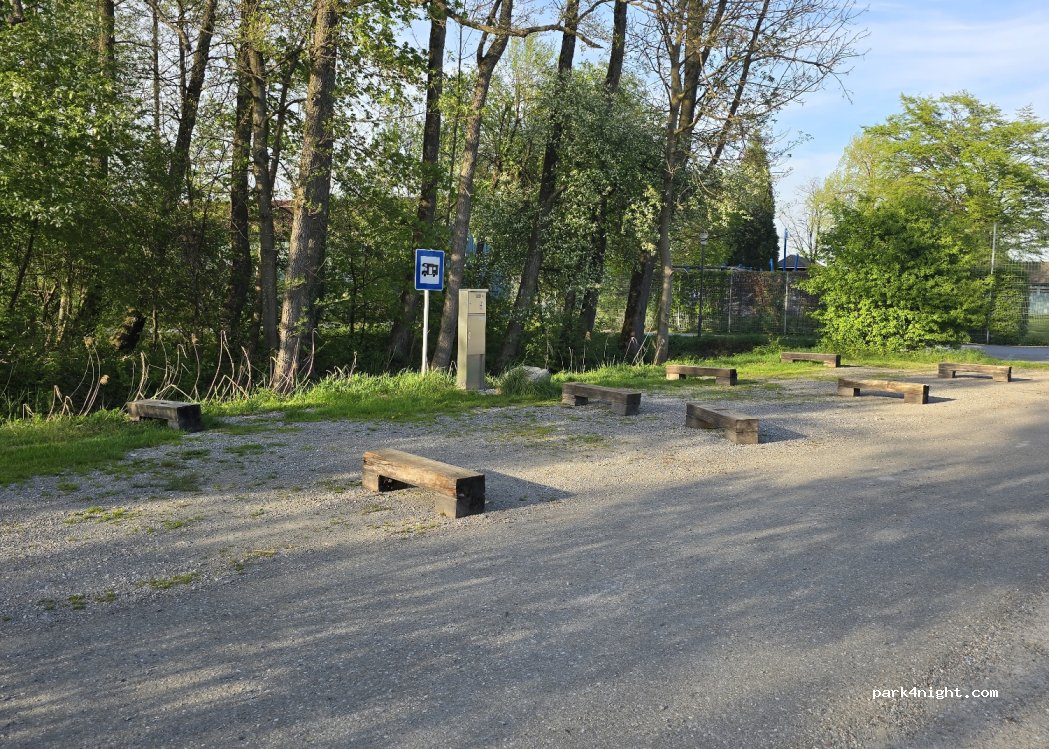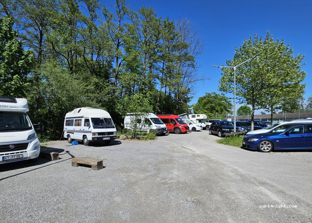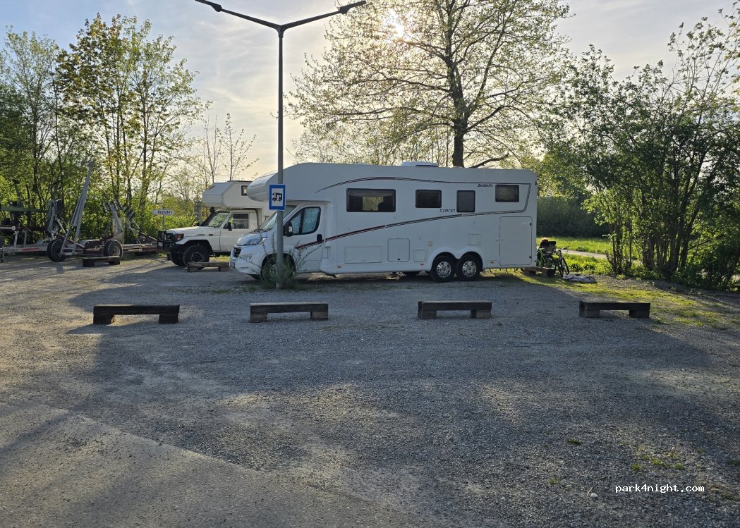 Man steht gut am hinteren Ende vom Schwimmbadparkplatz. Ruhig. Ausreichend Platz. Restaurants, See...3 Minuten. Preise: 0 bis 6 Uhr = 15€. 6 bis 24 Uhr 2€/h max 10€. Am Automaten zu Zahlen bei Ausfahrt. Kartenzahlg mgl. Strom 1€/1,5kW (Münzen)