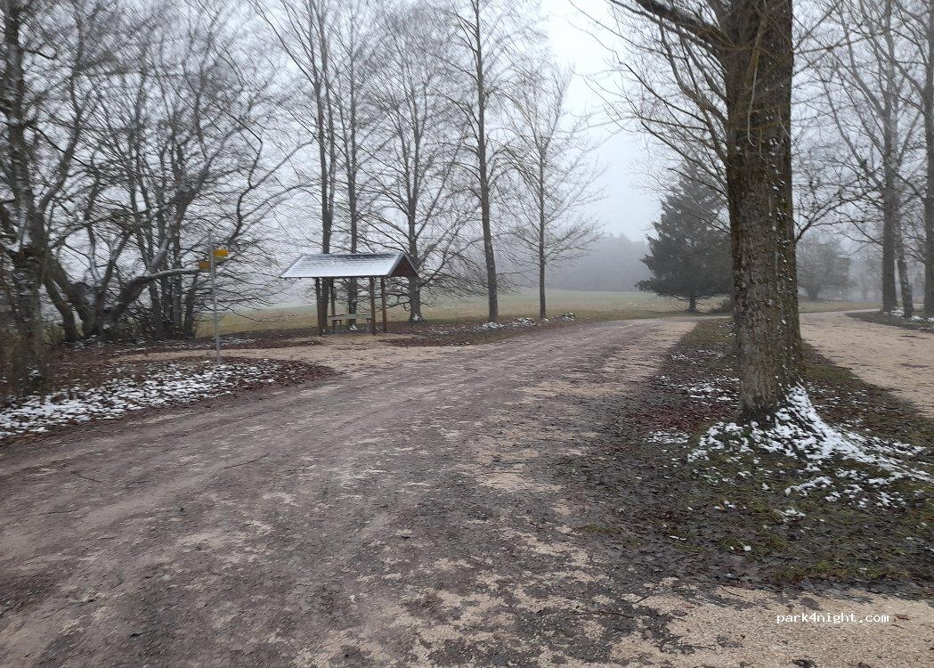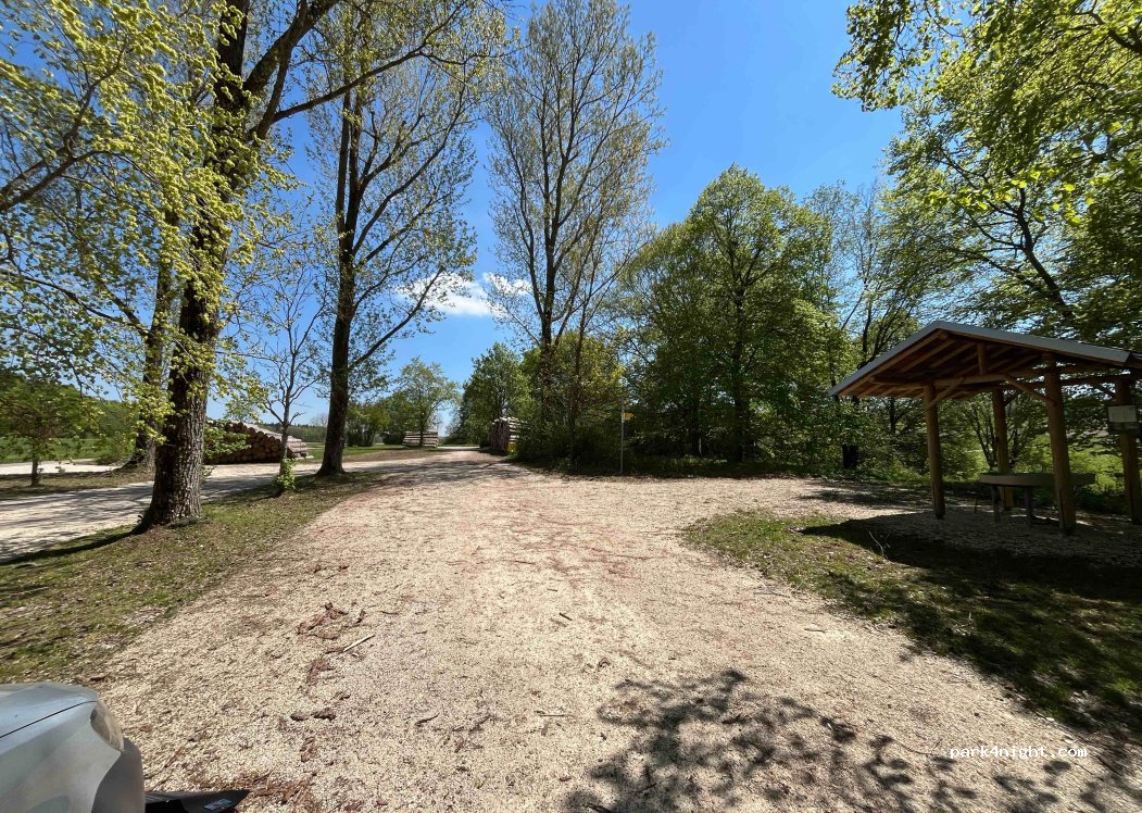 Endroit agréable et calme pour plusieurs mobil-homes. Il s'agit du parking 2 de la grotte de Sontheimer. Comme il ferme à 18 heures, ça se calme très vite. Une petite route passe devant, mais il n'y a pratiquement pas de circulation dessus. Endroit idéal pour passer la nuit et sortir sur de nombreux sentiers de randonnée et pistes cyclables.
