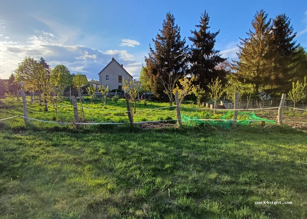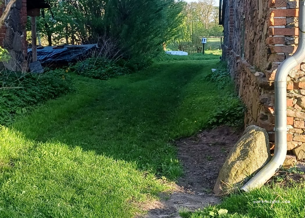 Bild 2 zeigt den Blick vom Standort aus nach links. Achtung - dort wohnen Hühner, falls das jemanden stört ;) (Ihr könnt Eier bei der Nachbarin erwerben 10 Stk. 3 €, 6 Stk. 2 €)
