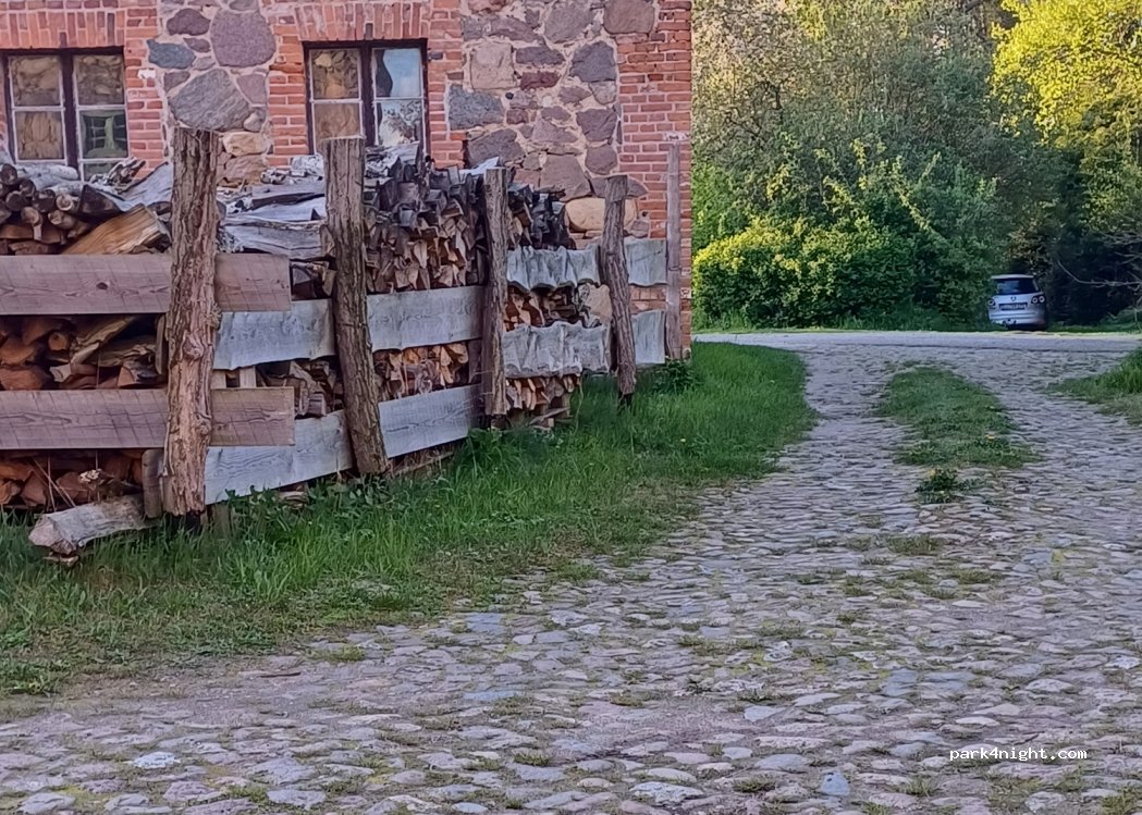 You stop on the left at the fence before the distillery's inner courtyard begins. There is space for 3 vehicles, which can be parked one behind the other a little to the left of the path.