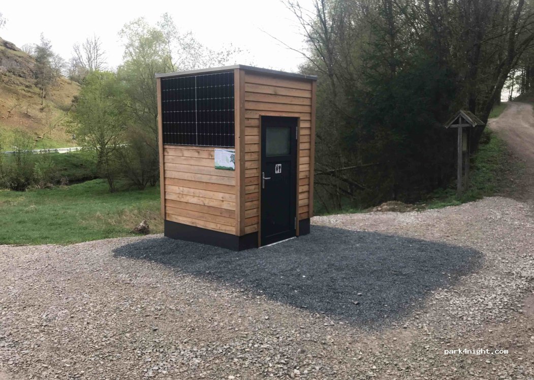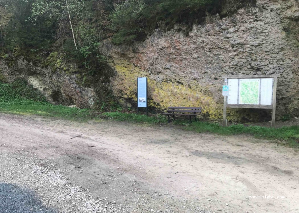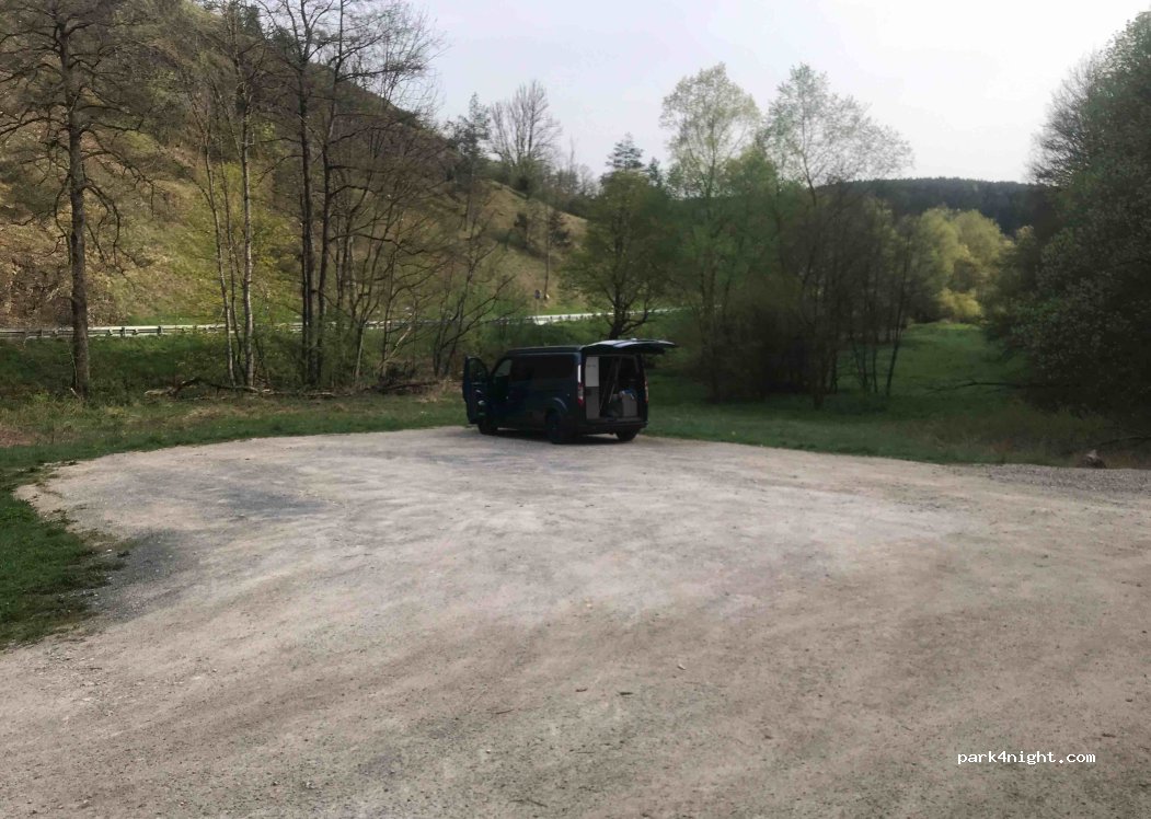 Small hiking car park on a village street, few cars on the road at night, a few minutes' walk to the Gasthof Neumühle, the car park is very sloping. There is a natural toilet in the car park.