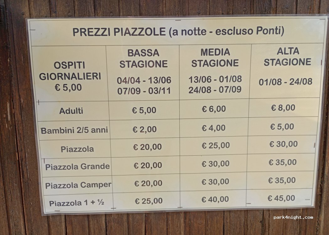 Platz liegt stadtnah und direkt am Strand gelegen. Freundlicher und zuvorkommender Betreiber. Gut funktionierende und saubere Einrichtungen. Wir bezahlen in der Nachsaison 20 Euro für das Womo und 4 Euro pP.