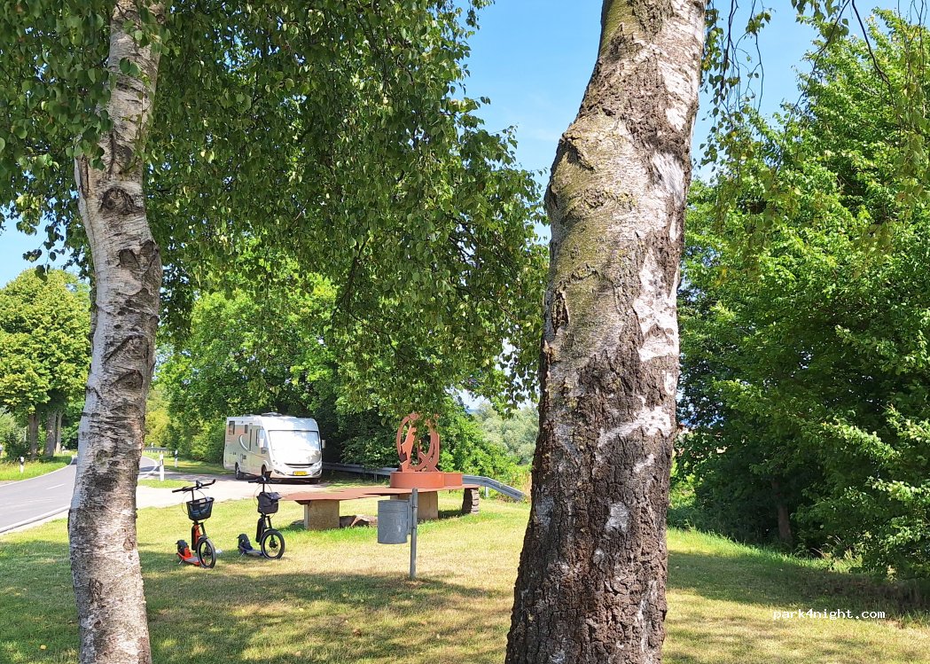 Sehr schöner und ruhiger Platz. Nur wenige Autos fahren vorbei. Mit 2 Holzbänken und großen Tisch und einen Mülleimer gibt es auch. Sehr zu empfehlen