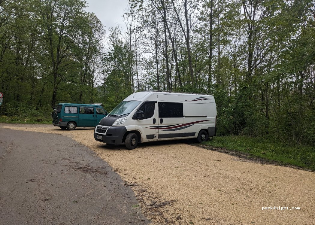 Great place to park to visit Russenstein castle. It's about a 15 minute walk from the car park and definitely worth checking out. We stayed overnight and it was very peaceful. Ground slightly unlevel. No signs saying you can't park overnight.