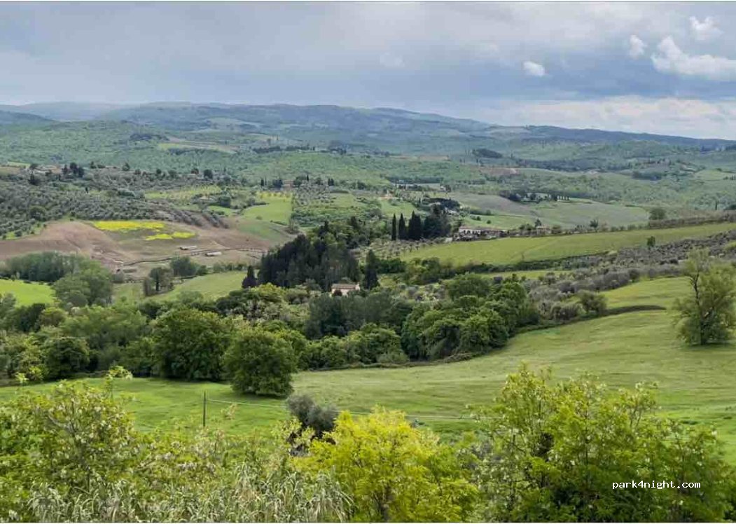 Agricamping im Grünen mit schattigen, großzügigen, ebenen, panoramischen Stellplätzen mit Stromanschluss. Gut ausgestattete Einrichtungen: luxuriöse Bäder, Duschen, 12,5 x 6,5 m Pool, Solarium und Grillplatz. Kostenloses Wasserauffüllen und -ablassen. Vor Ort Verkauf von Wein, Olivenöl, hausgemachtem Brot und Bio-Gemüse vom Hof. Ein Besuch im nahe gelegenen Naturschutzgebiet – nur 4 km entfernt – wird empfohlen, um den Fluss zu genießen, ein bekannter und malerischer Ort zum Schwimmen und Entspannen in der Natur (siehe Foto *). Traditionelle toskanische Abendessen mit Produkten vom Hof erhältlich.