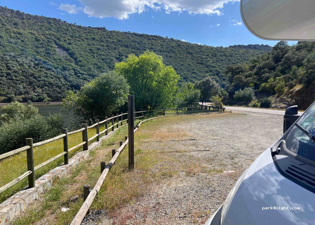 Schöner Parkplatz/Aussichtspunkt direkt an der Straße. Wenig Verkehr, viel Platz.