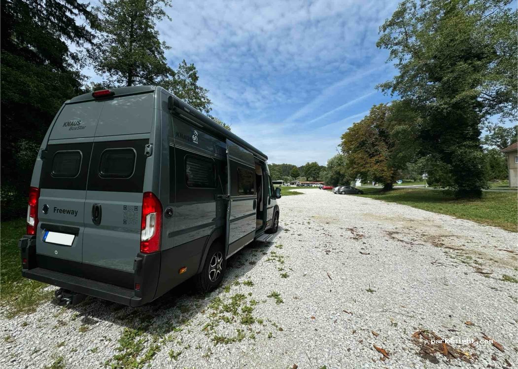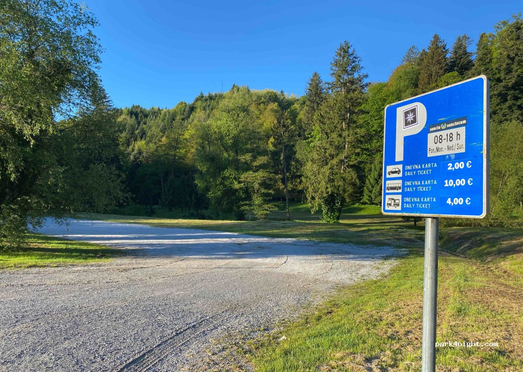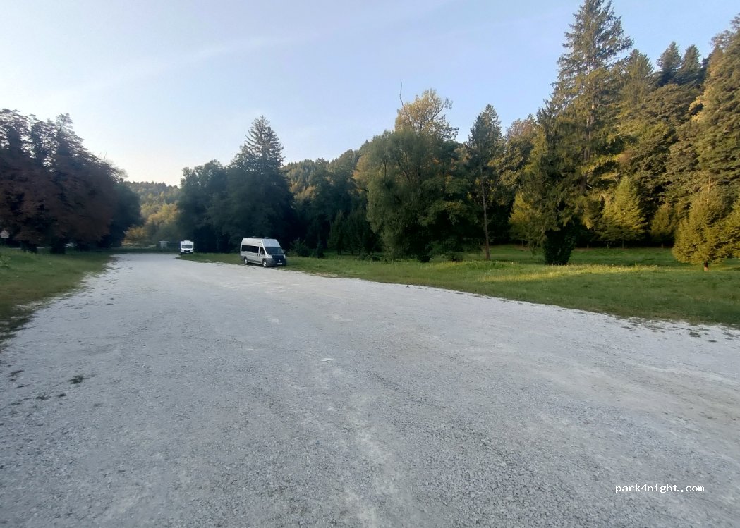 Lep miren kraj. Parkirnine ni bilo potrebno placati. Je pa ponoči zelo mirno. Poleg so zelo urejeni WC. Je pa to parkirišče za obisk gradu tako da je čez dan polno zaseden.