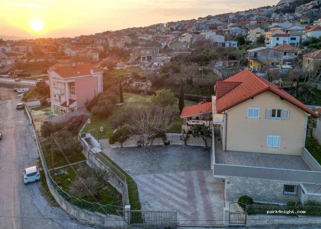 2 Stellplätze im Hof eines privaten Wohnhauses. Besitzer sprechen deutsch, sind sehr freundlich und geben gute Tips für den Besuch in Split. Direkte Busanbindung in die Stadt, so dass einem die Parkplatz Suche in der vollen Stadt erspart bleibt. Die Nacht war sehr ruhig, viel besser wie an den großen Parkplätze, die dazu das doppelte kosten.