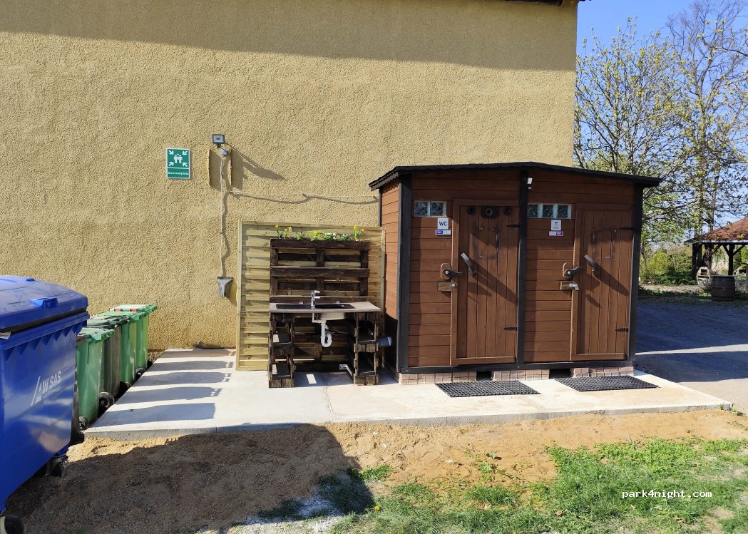 Neu angelegter Stellplatz direkt an einem Hotel. Sehr netter Empfang und liebevoll angelegte Anlage. 1 WC und 1 Dusche vorhanden. Strom, Frischwasser und Grauwasserentsorgung gibt es auch. Leider durch die Lage und den Straßenverkehr relativ laut. Mit 25 Euro/Nacht preislich am oberen Ende.
