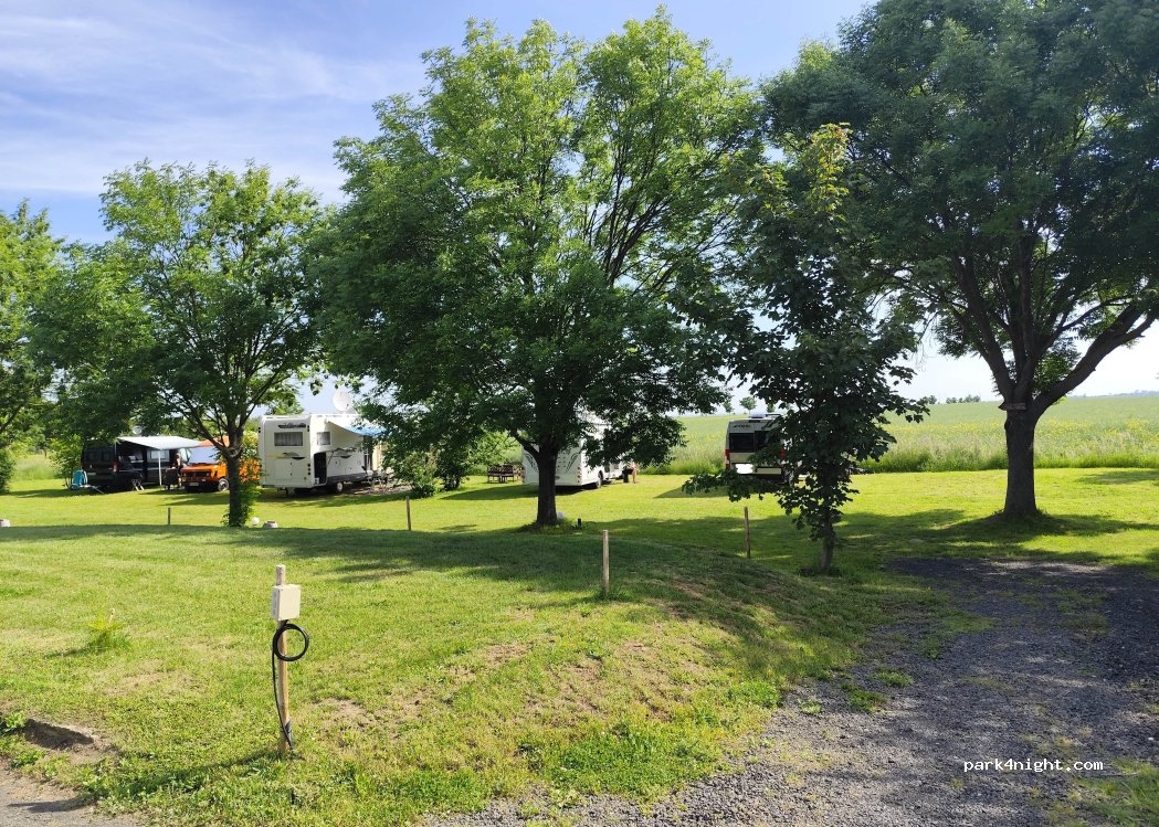 Sehr schöner Stellplatz mit schöner Aussicht. Strom ist inklusive. Der Stellplatz gehört zu einem Hotel / Restaurant mit durchgehend warmer Küche und Frühstücksbuffet. Auch das Essen können wir empfehlen. Der Stellplatz ist etwas uneben aber es liegen Ausgleichshölzer bereit. Super netter Empfang an der Hotel Rezeption.