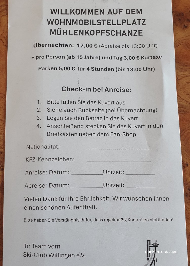 Sehr schöner Stellplatz auf dem Auslaufgelände der Mühlenkopfschanze unter dem Skywalk. Spektakuläre Aussichten. Ver- und Entsorgung sowie Strom ist in den 20 EU / N inkludiert. Guter Ausgangspunkt für Wanderungen und zur Standseilbahn zum Schanzenkopf und zum Skywalk. Danke an den Skiklub für die Gastfreundschaft.