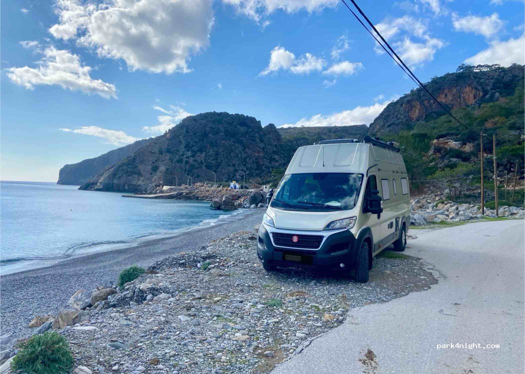 Bien pour une nuit, emplacement un peu restreint et proche de la route. En haut de petites criques avec une très belle eau et loin de la foule. Il y a les bus pour l'arrivée du ferry entre 17h30 et 18h30 mais ensuite uniquement le passage de locaux et quelques touristes. Du vent dans la nuit mais sinon elle a été calme. Aucune commodité, merci de respecter ce lieu.