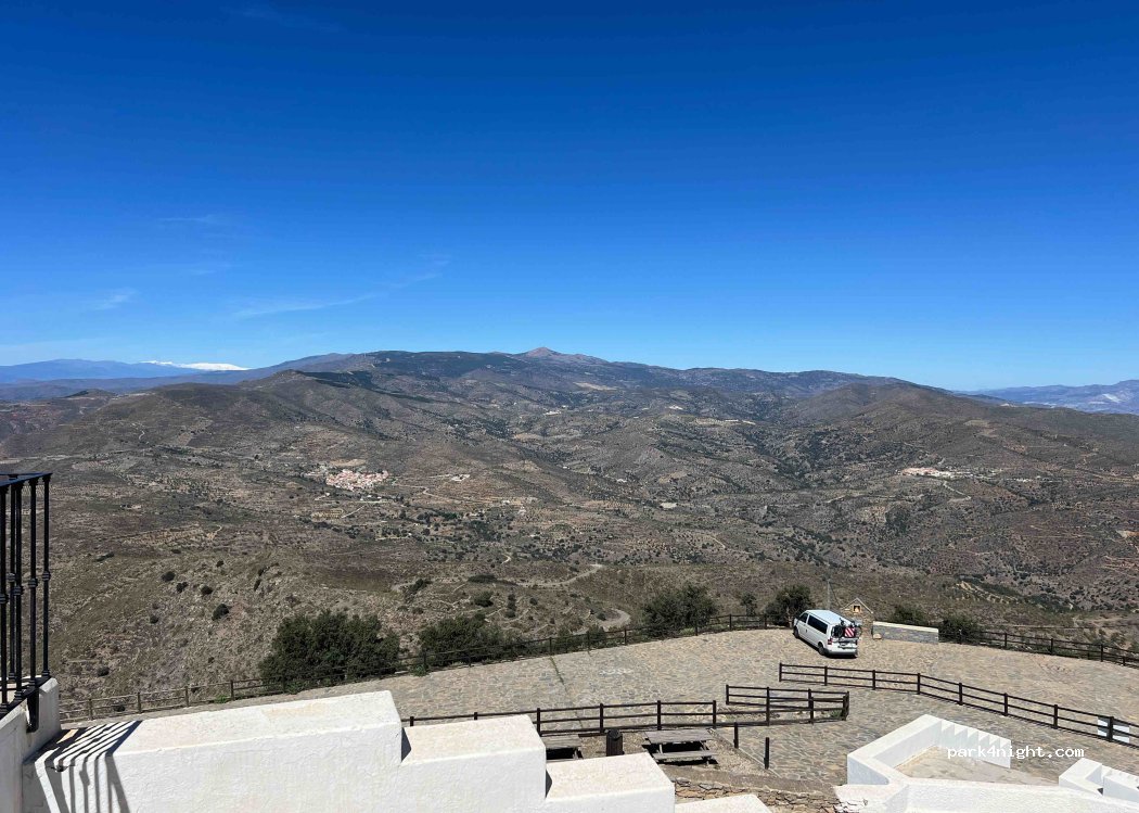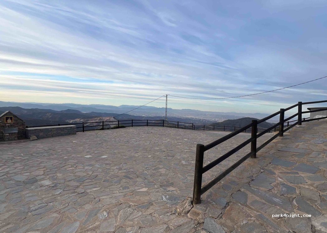 Ein 360°-Panoramablick auf die andalusische Sierra. Die Route beginnt in Beninzalon und führt über eine asphaltierte Straße zur Einsiedelei. Von dort zweigt ein unbefestigter Weg nach Süden ab, der bei schlechtem Wetter schwer befahrbar ist. Daher empfiehlt es sich, die asphaltierte Straße ab Beninzalon zu nehmen. An Wochenenden und Feiertagen ist hier viel los, unter der Woche hingegen ist es fast menschenleer. Die Aussicht ist wahrhaft atemberaubend.