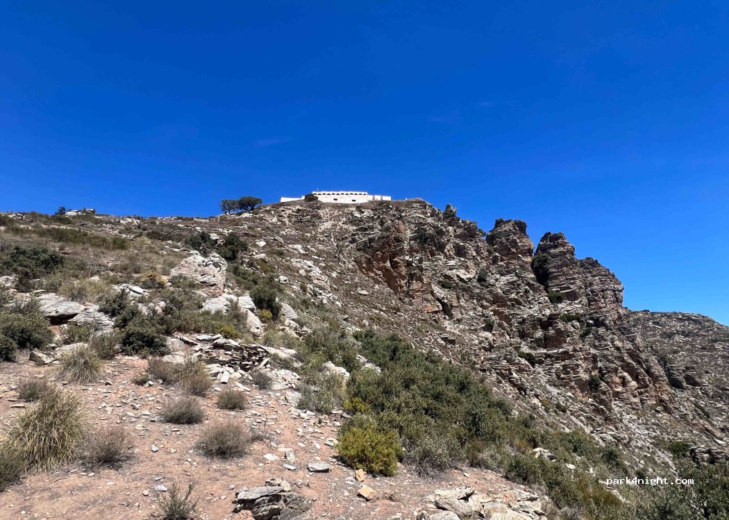 Una vista panorámica de 360° de las sierras andaluzas. La ruta parte de Beninzalón, siguiendo una carretera asfaltada hasta la ermita. Desde allí, una pista de tierra asciende hacia el sur, lo cual es ciertamente difícil de transitar con mal tiempo, por lo que es mejor tomar la carretera asfaltada desde Beninzalón. Sin duda, hay mucha actividad aquí los fines de semana y festivos, pero entre semana está prácticamente desierto. La vista es realmente impresionante.