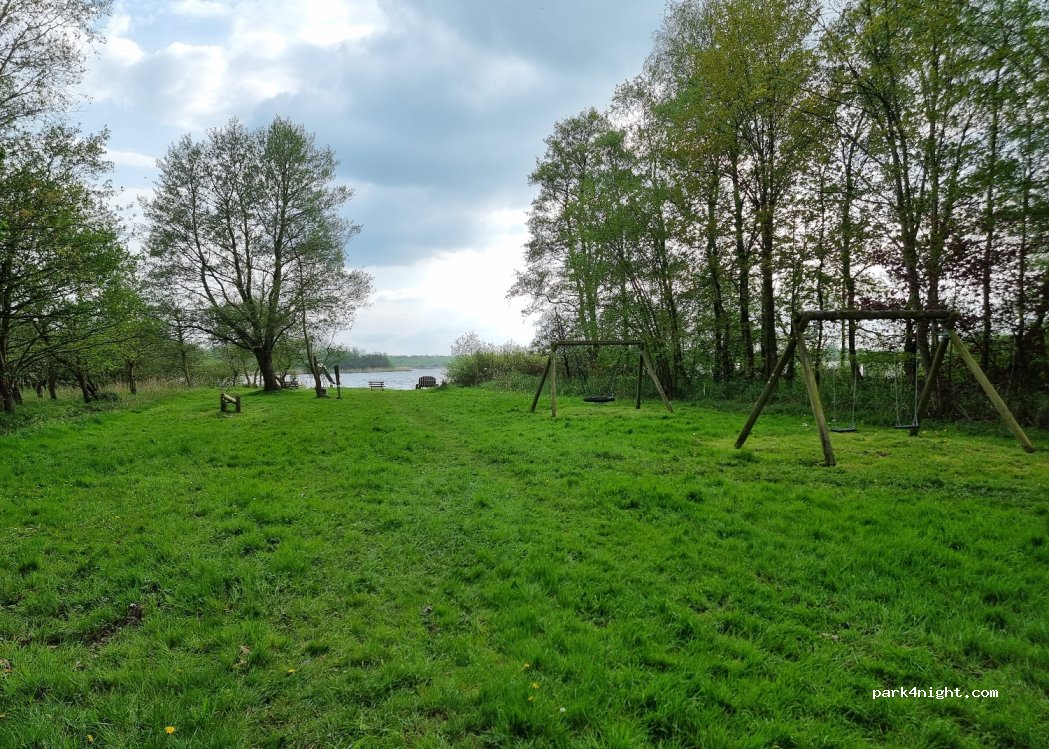 Erholungsort der Einheimischen. See, Spielplatz. Übernachten verboten (Schild).