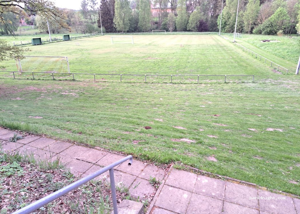 Parkplatz neben dem Fußballplatz. Sehr ruhig, als wir dort waren (Freitag bis Samstag). Einige Dorfbewohner machen ihre Runden. Keine Annehmlichkeiten. Schöne Aussicht über die Felder.