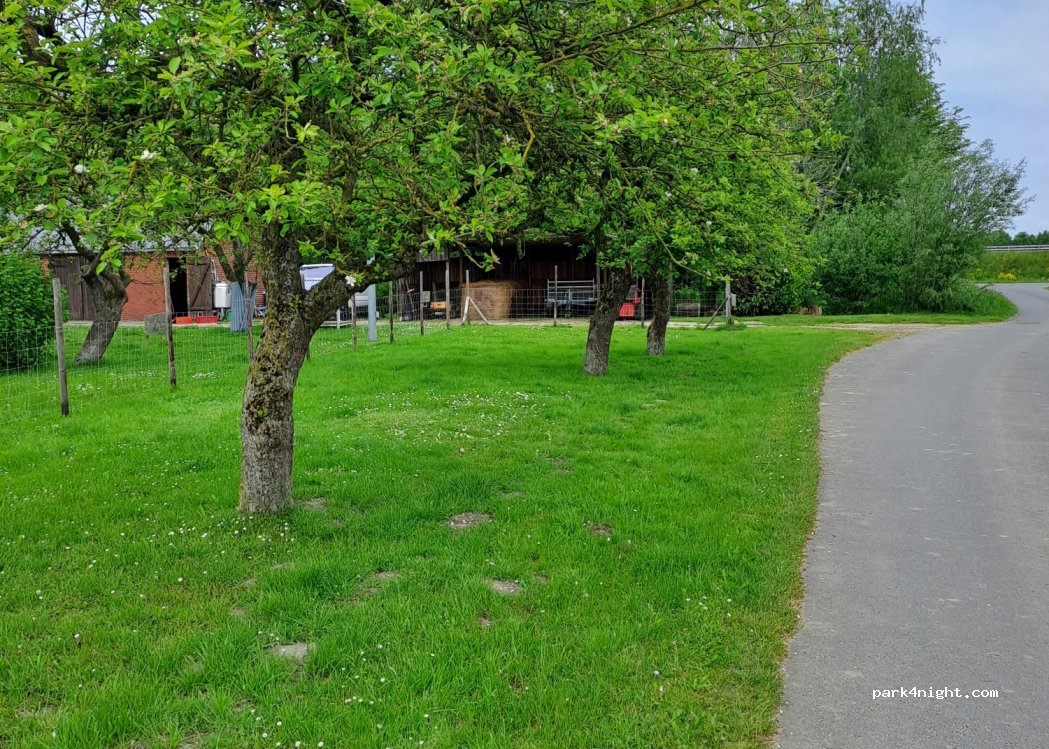 Perfecte plek voor 2 campers, een hartelijk welcome door eigenaresse, fijne mensen, heel mooi uitzocht onder de appelbomen. De grotere weg om de hoek is niet storend, je hoort deze nauwelijks als je de ingang van de camper naar de andere kant zet. Stadje is met de fiets makkelijk te bereiken.