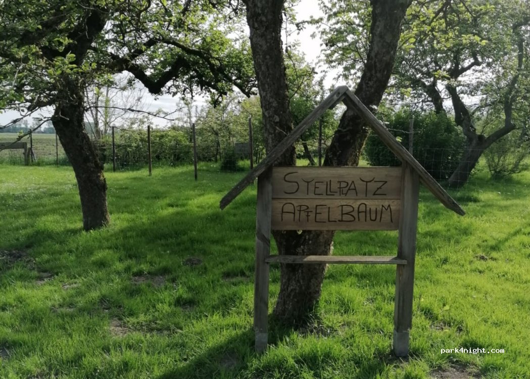 Stellplatz unter Apfelbäumen (unbefestigt). Nur für autarke Camper!