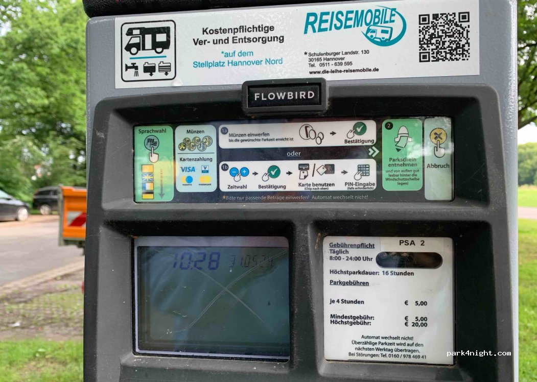 Viel Platz...jedenfalls wenn jeder rücksichtsvoll parkt. Sehr ruhig. Fussweg 5 minuten zur Sbahn.Nach 10 minuten direkt am Kröpke mitten in der Stadt. Nebenan ist eine Pizzaria ( da wurden uns auch sanitäre Anlagen angeboten...sehr nett!! ) Nächstes mal werden wir dort mal einkehren Wir haben bis zum nächsten morgen um 9 12 Euro bezahlt Für uns ein Super Stellplatz wenn man nach Hannover fährt