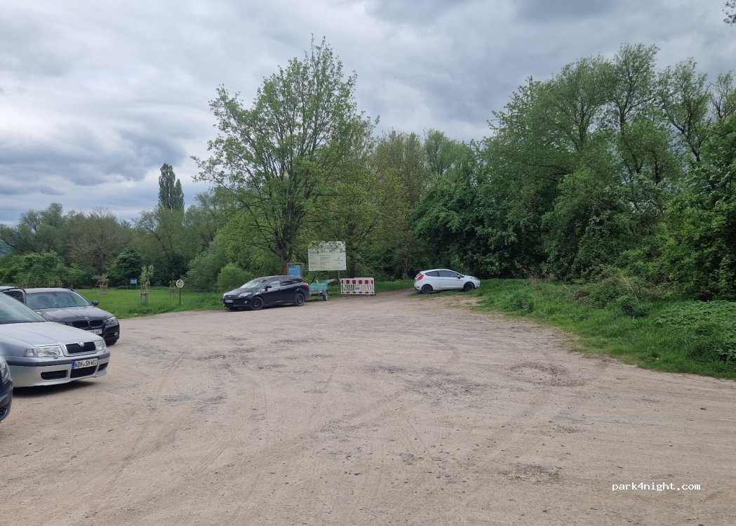 Unterhalb des Konzentrationslagers Mittelbau-Dora an einer Kleingartenanlage. Bei Regen schwieriger Untergrund, aber geschottert. Für Wohnmobile bis 6m.