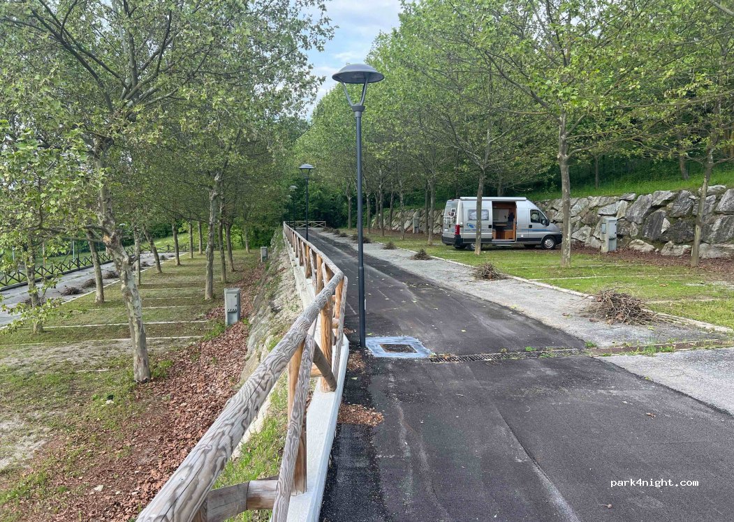 A very good, well-equipped and free camper van area, with around 20 places, on the level and with a view, within walking distance of a beautiful village with a castle.