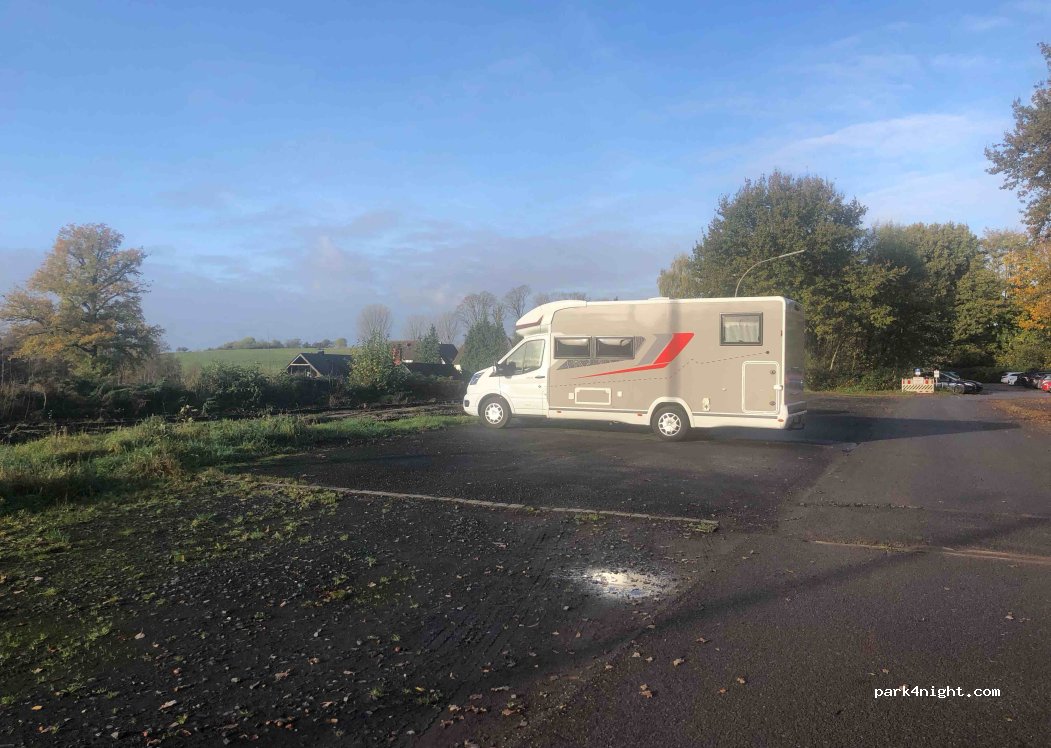 Beautiful location right next to a disused railway line and train station. Direct access to wonderful excursions and hikes. The car park itself is a bit rough, but quiet. Chargeable.