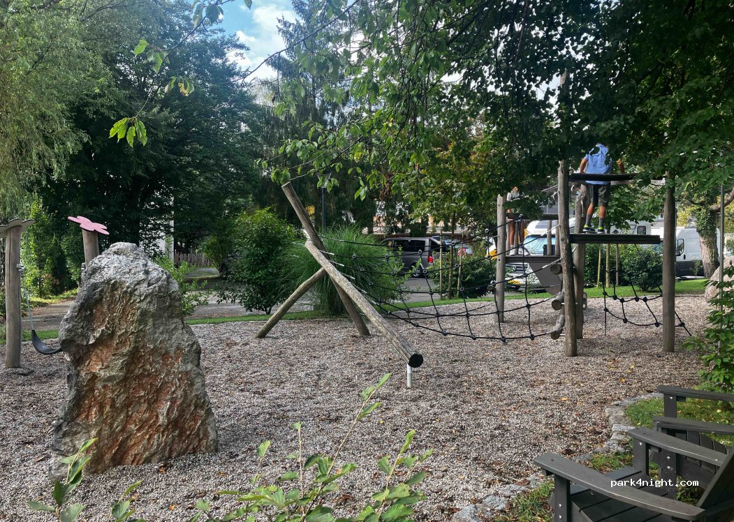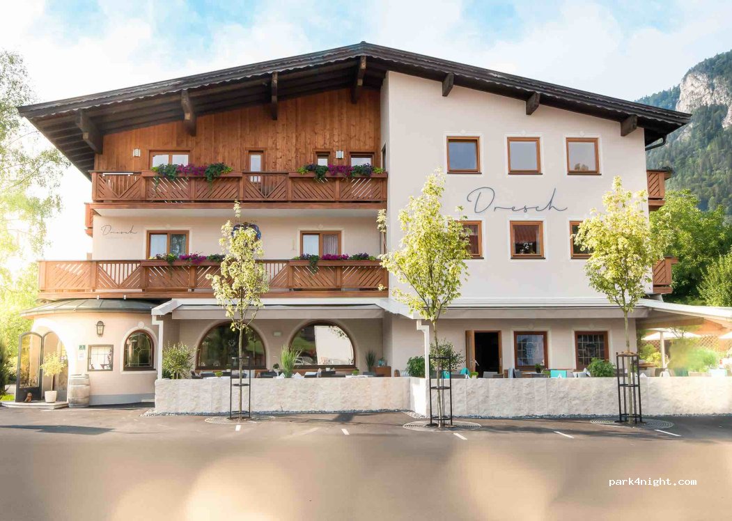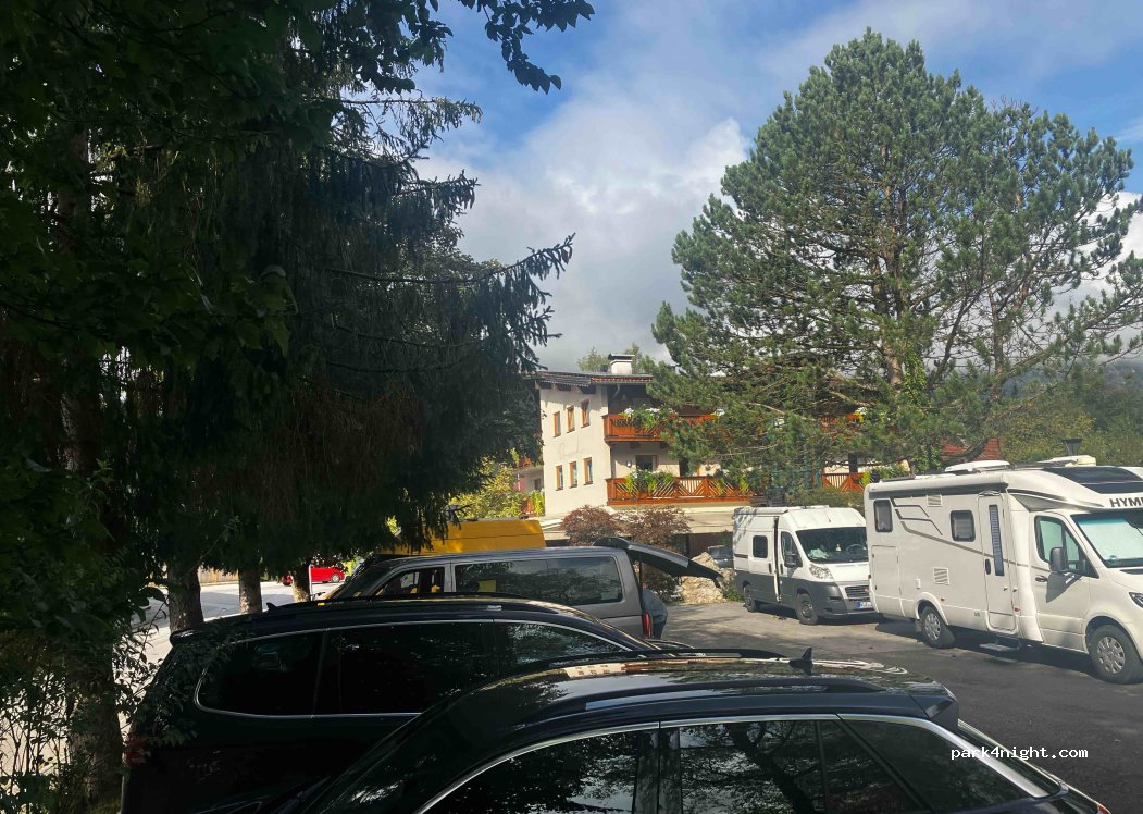 Parkeerplaats van het hotel ligt naast een klein beekje en een speeltuin! Heerlijk gedineerd bij het restaurant! Het beste restaurant van Oostenrijk met zeer vriendelijk en behulpzaam personeel! Echt meer dan het geld waard! Ideale combinatie!! Van tevoren gebeld of er plek was en in het Engels wederom zeer vriendelijk geholpen!