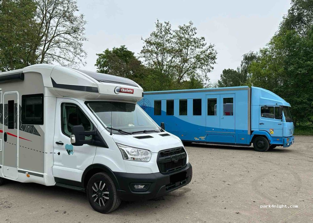 Parking au bord de la zone de loisirs Auensee. C'est un grand parking, mais quand il y a beaucoup de visiteurs, il y a beaucoup de campeurs, donc je dirais un maximum de 5 campeurs. On entend un peu la rue pendant la journée, mais c'est calme la nuit.
