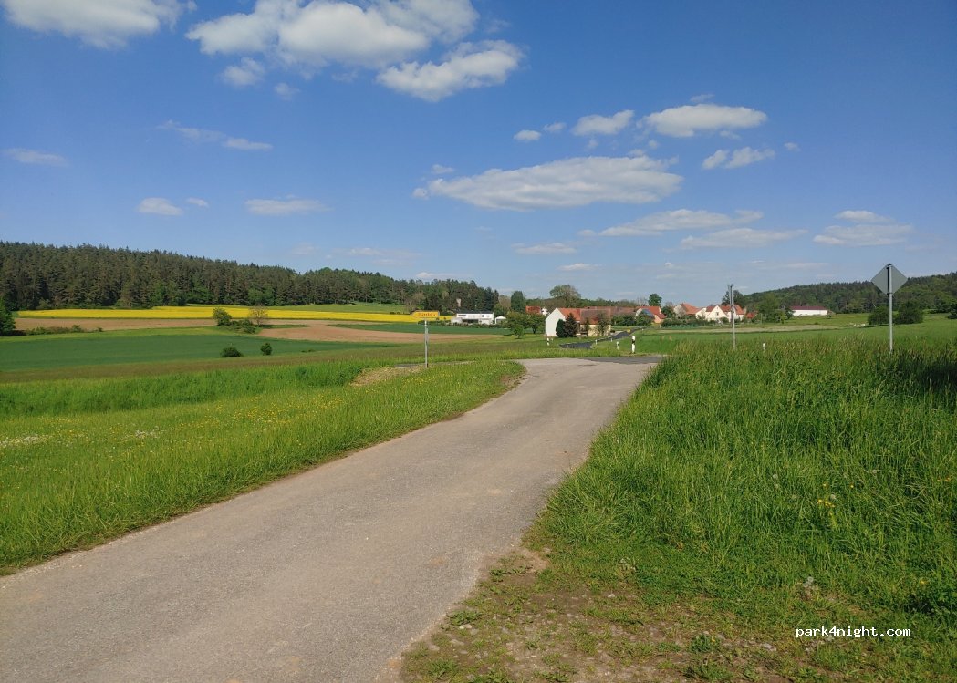 An einer nicht stark befahrenen Landstraße liegender Stellplatz, nachts ruhig. Bank ist vorhanden, ansonsten keinerlei Versorgung. Ausblick ist herrlich, über Wald und Wiesen.