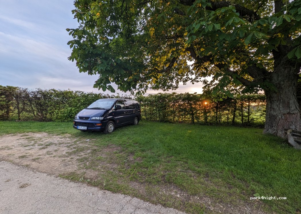 Small spot next to a small chapel. Great for one night. But please leave it tidy. The road is right next to it so you can definitely hear cars. View of the Nürburg.