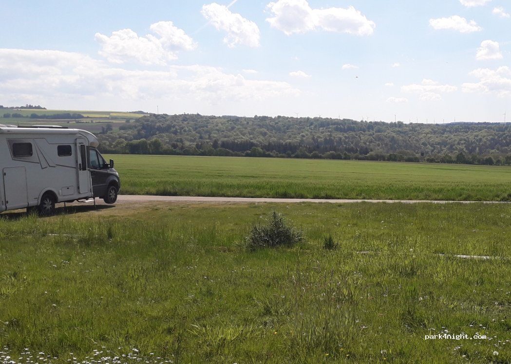Au terrain de sport Morshausen Beulich, suivez toujours la Römerstrasse jusqu'au terrain de sport et les panneaux Ruhewald. Cabane de grillades, parking et juste une vue verdoyante sans aucune maison.