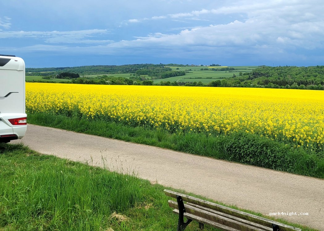 Absolut ruhiger Platz mit Blick über riesige Rapsfelder. Man hört nur Spechte, Uhus und andere Vögel. Nur tagsüber kommt ab und zu mal ein Auto vorbei.