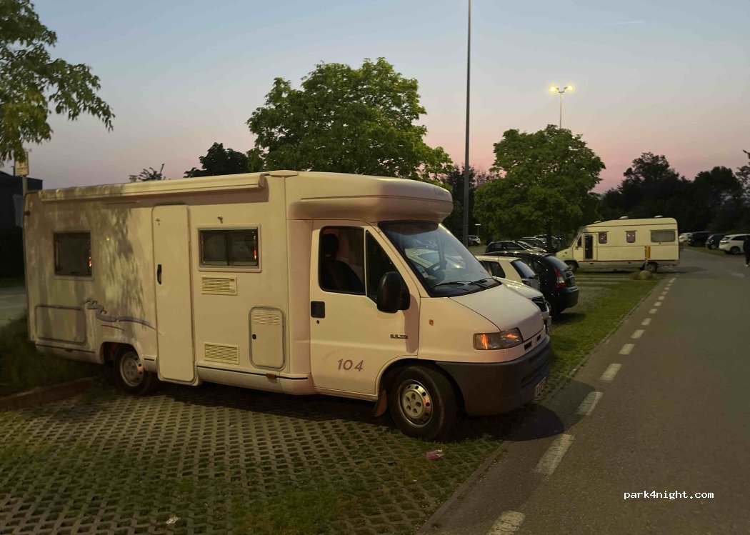 Parking de la estación del tren. Pasamos la noche sin problemas. Aunque mucho ruido de los trenes que pasan a menudo. A unos 15 minutos del centro. Gratis. Sin servicios.