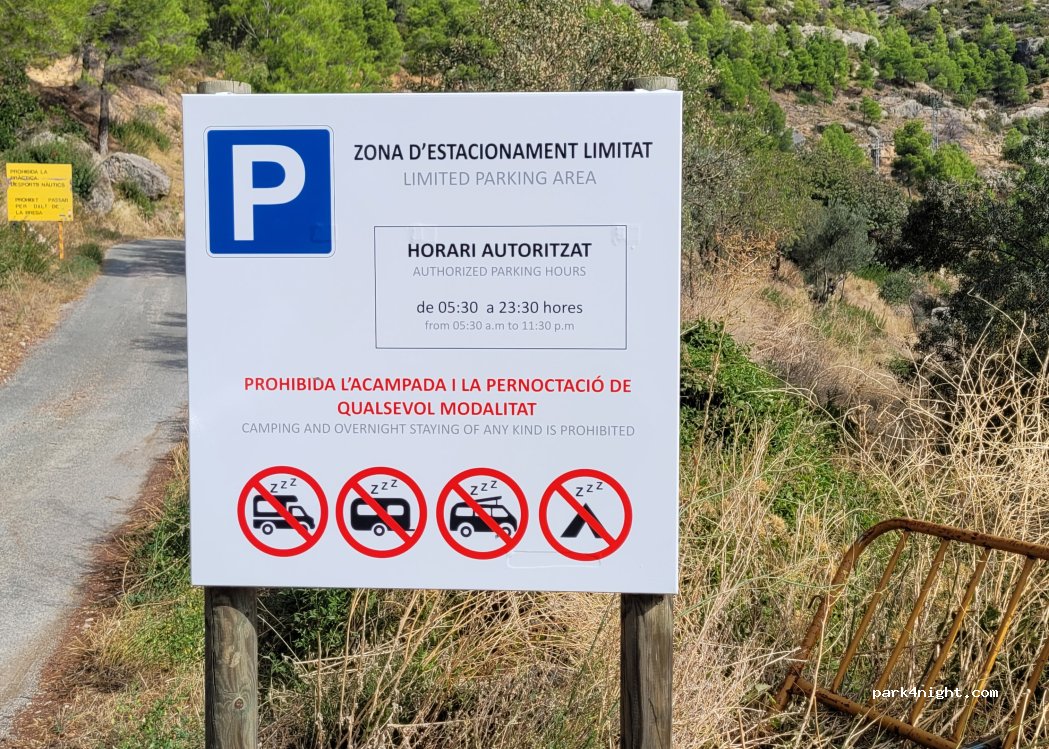 Buen sitio para dormir en plano cerca de los sectores de escalada Pantà y varios senderos muy recomendables. Tiene WC, fregaderos y barbacoas, agua NO potable. Precios: 3€/auto, 1€/persona.