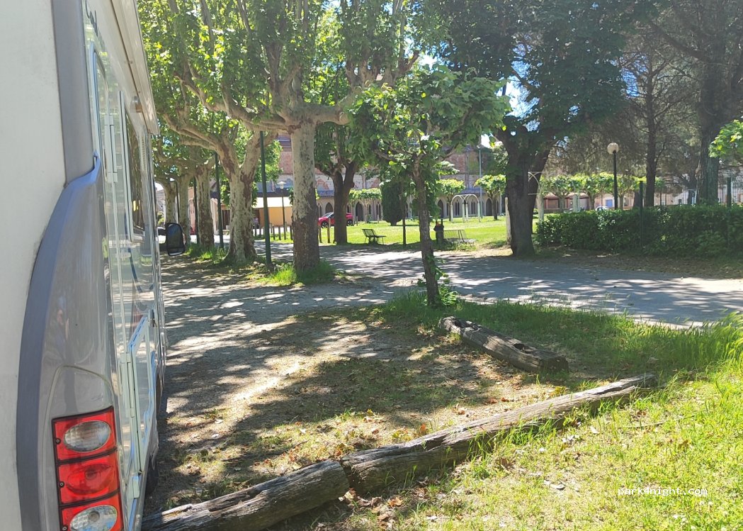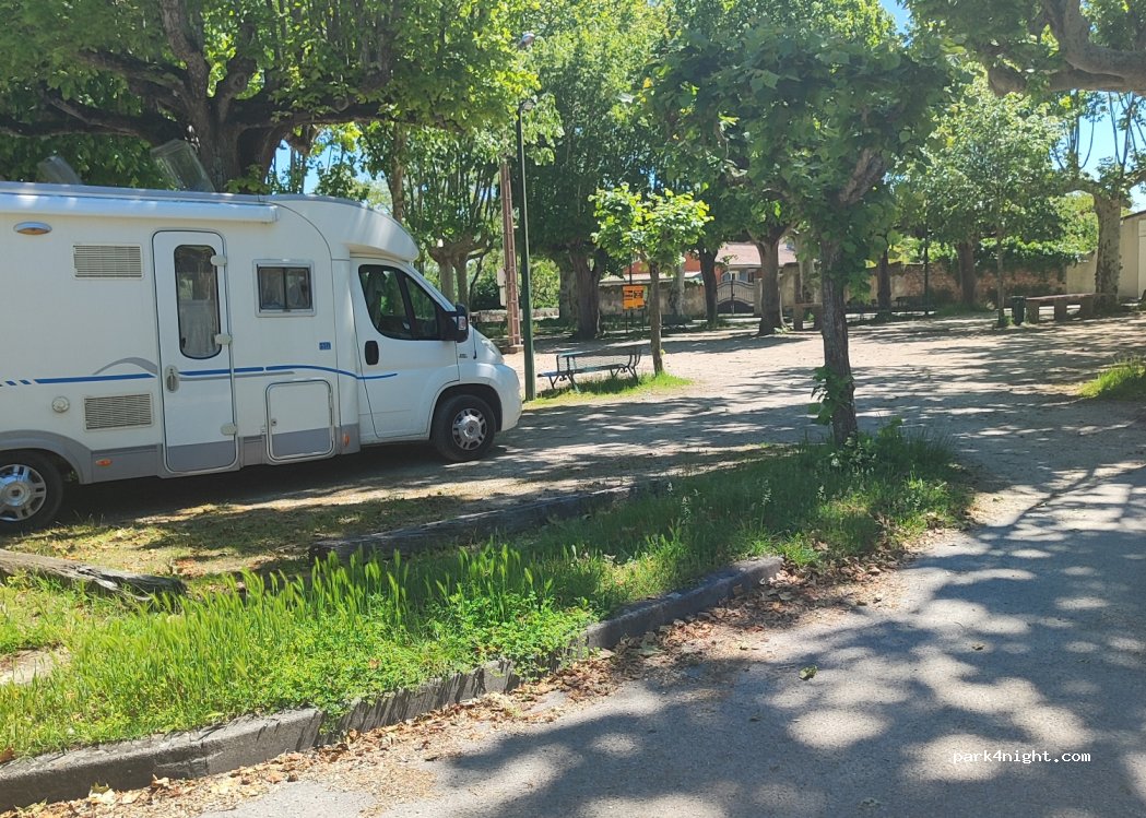 Emplacement ombragé accessible aux grands camping-cars (le mien 8 mètres hors tout).