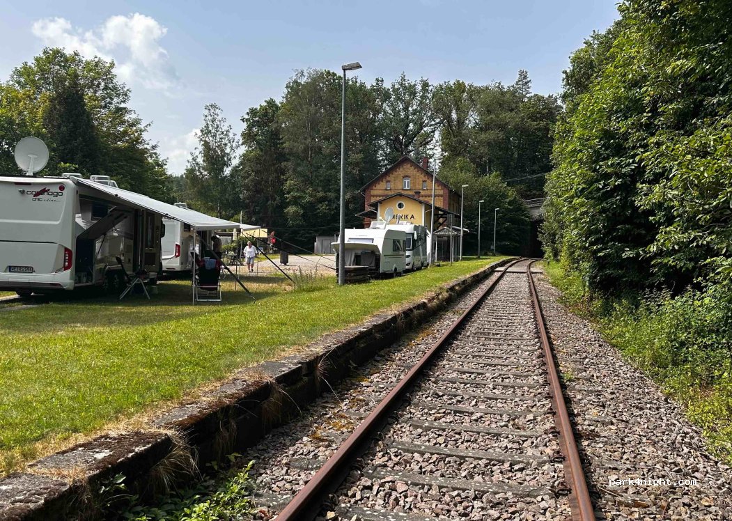 Schöner ruhiger Stellplatz. Perfekt für eine Wanderung oder Radtour geeignet. Schönes Bahnhofsgebäude. Freundliche und nette Bedienung im Biergarten Hermine. kommen gerne wieder