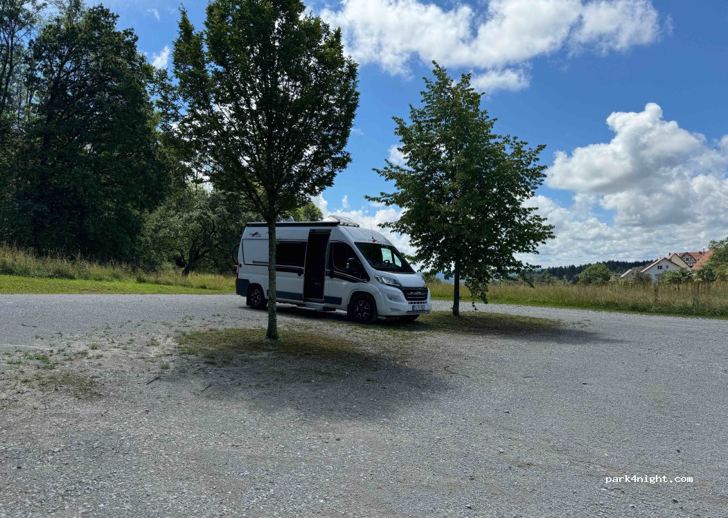 Super ruhiger Nachtplatz und sehr dunkel. Wohnhäuser in Sichtnähe. Morgens Treckerbetrieb. Kuhweide und Hahn ebenfalls. Hatte leider das Glück mit der Jugend... Haben wohl den Poller weggenommen und sind zum Turm hochgefahren. Anfahrt empfinde ich nicht als steil. Im Dunkeln kam ich an über "schmale" "Anlieger frei"-Waldstraßen. Gruselig... haha... Handyempfang sehr gut.