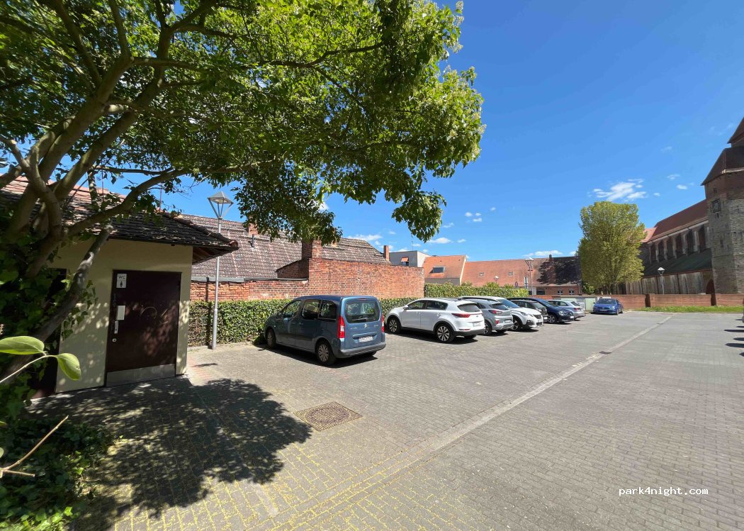 Parkplatz direkt am Dom. Montag-Freitag 2 Std. gratis. Am Wochenende keine zeitliche Einschränkung. Toiletten gegen Gebühr. Für große Wohnmobile nicht geeignet, da zu schmal, eher für Kastenwagen geeignet.